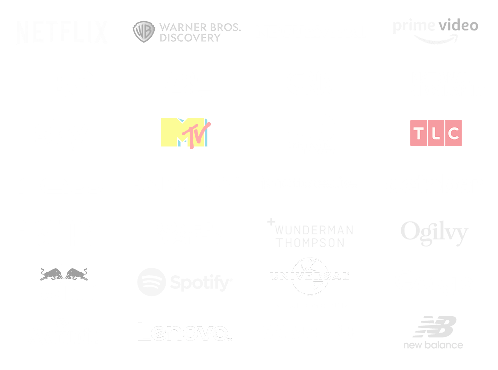 For the past twenty years we have produced content for a myriad of media platforms, a testament to our adaptability and broad skill set. With roots in unscripted television and documentary series, our portfolio has grown to include feature films, branded content, music videos, immersive and theatrical events. Here’s selection of the companies, agencies, networks and streamers we have done projects for.
